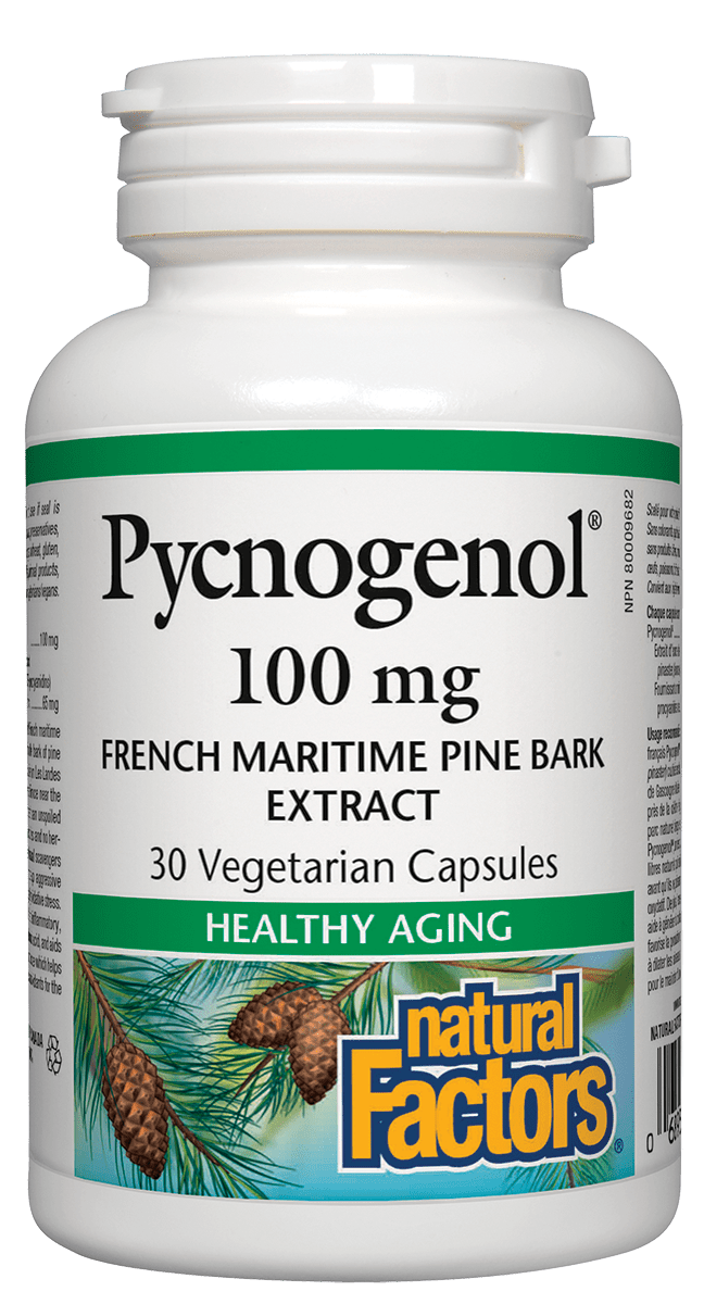 As we age, inflammation and free radicals cause increasing damage, threatening the health of delicate tissues. Natural Factors Pycnogenol® is a natural plant extract derived from French maritime pine bark (Pinus pinaster) that strengthens cell membranes.