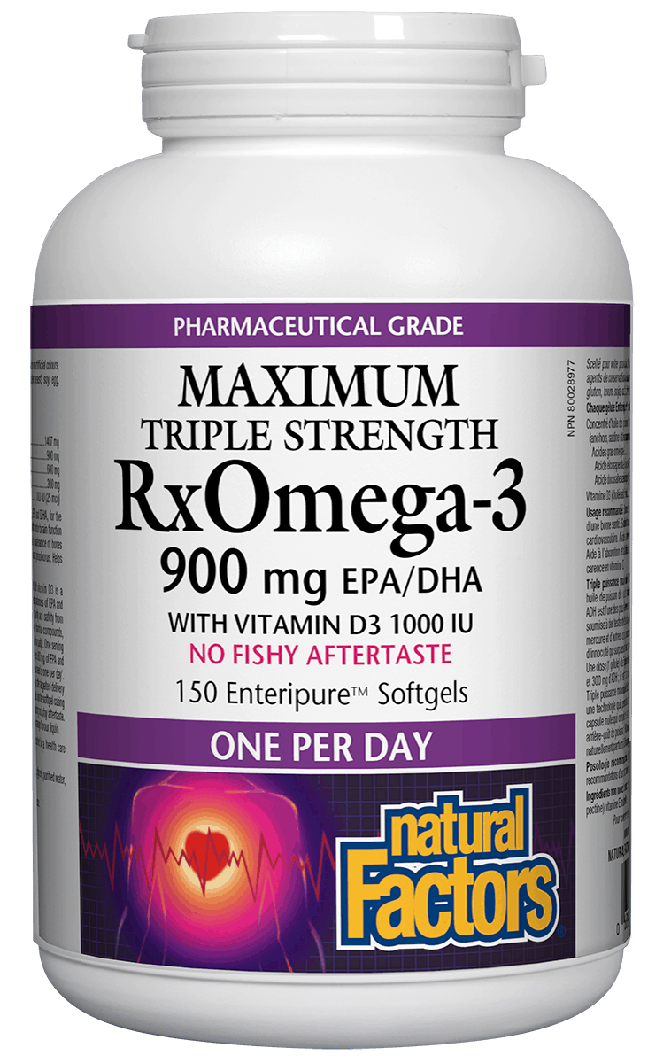 Natural Factors RxOmega-3 with Vitamin D3 Maximum Triple Strength 900mg 150 Softgels